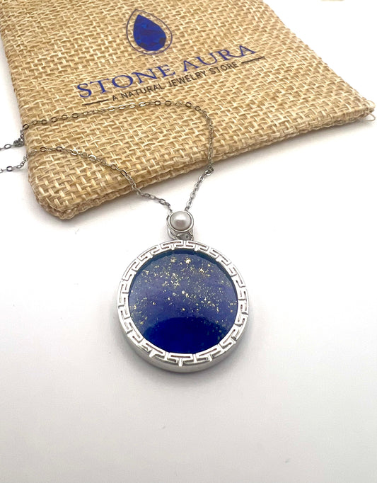 Auffälliges Collier mit Lapislazuli und Mäander-Design