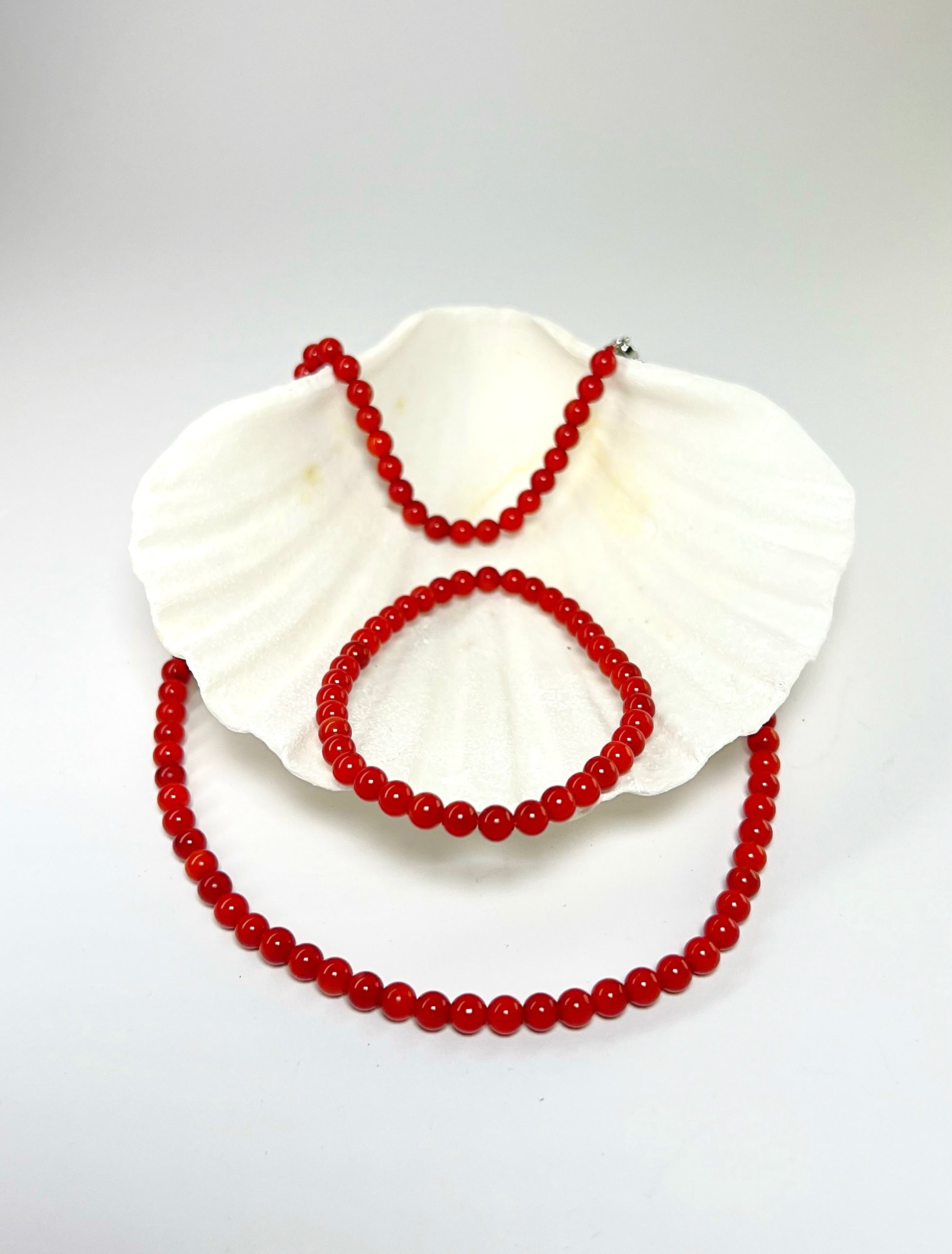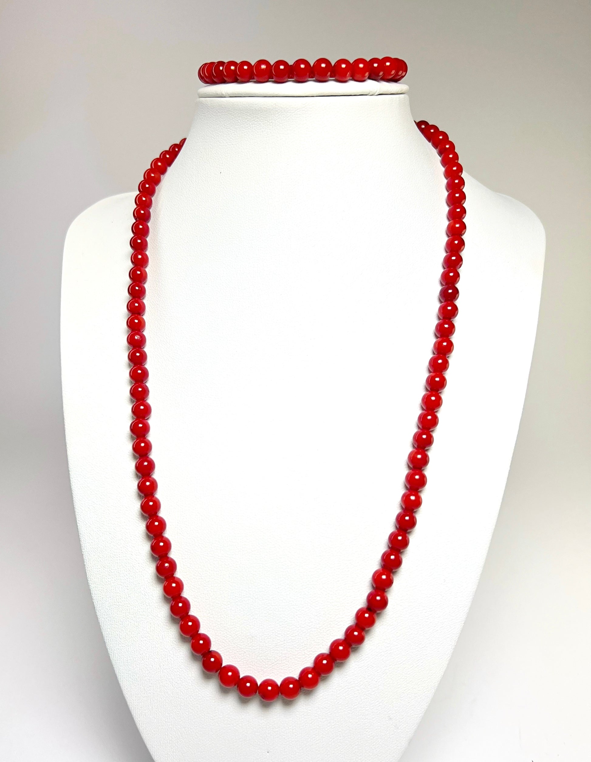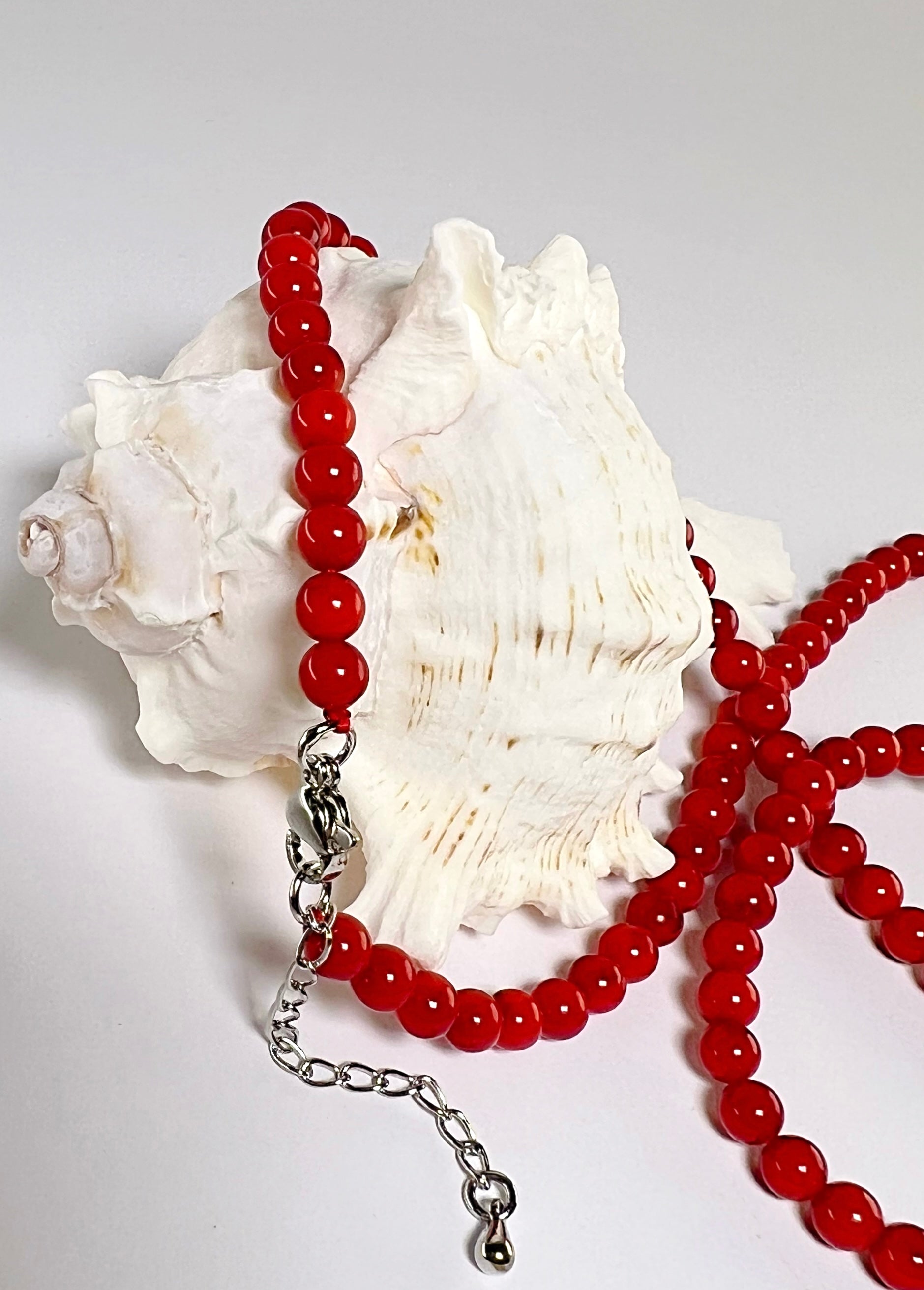 Halskette: Presskoralle, Kugelgröße ca. 7–8 mm, Länge verstellbar von ca. 55 cm bis 60 cm