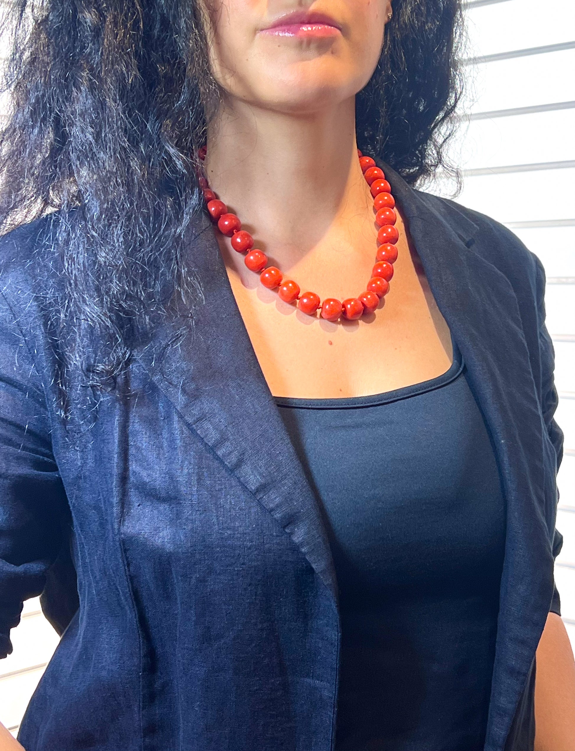 Exquisites Vintage-Collier aus Presskoralle, handgefertigt.