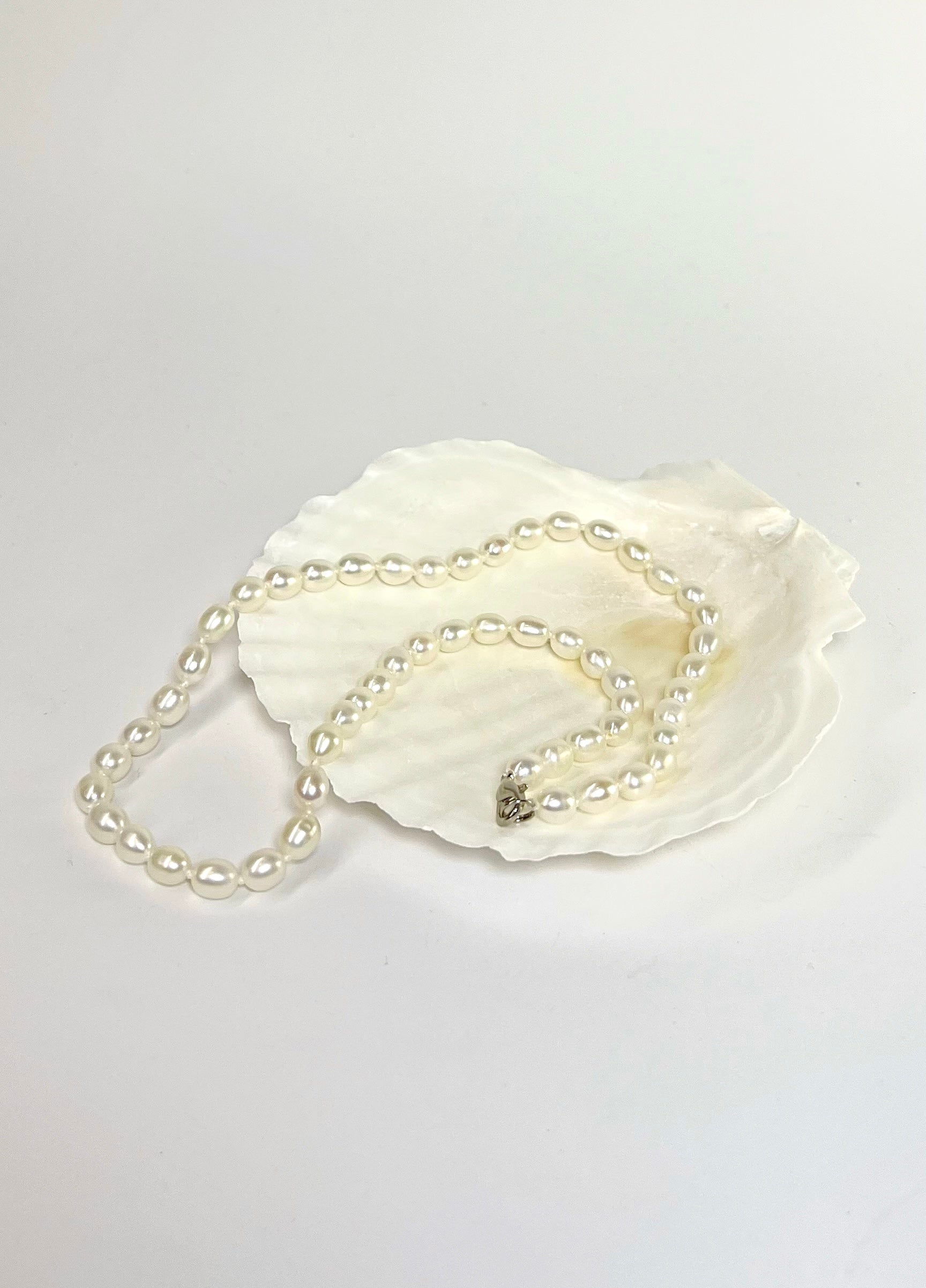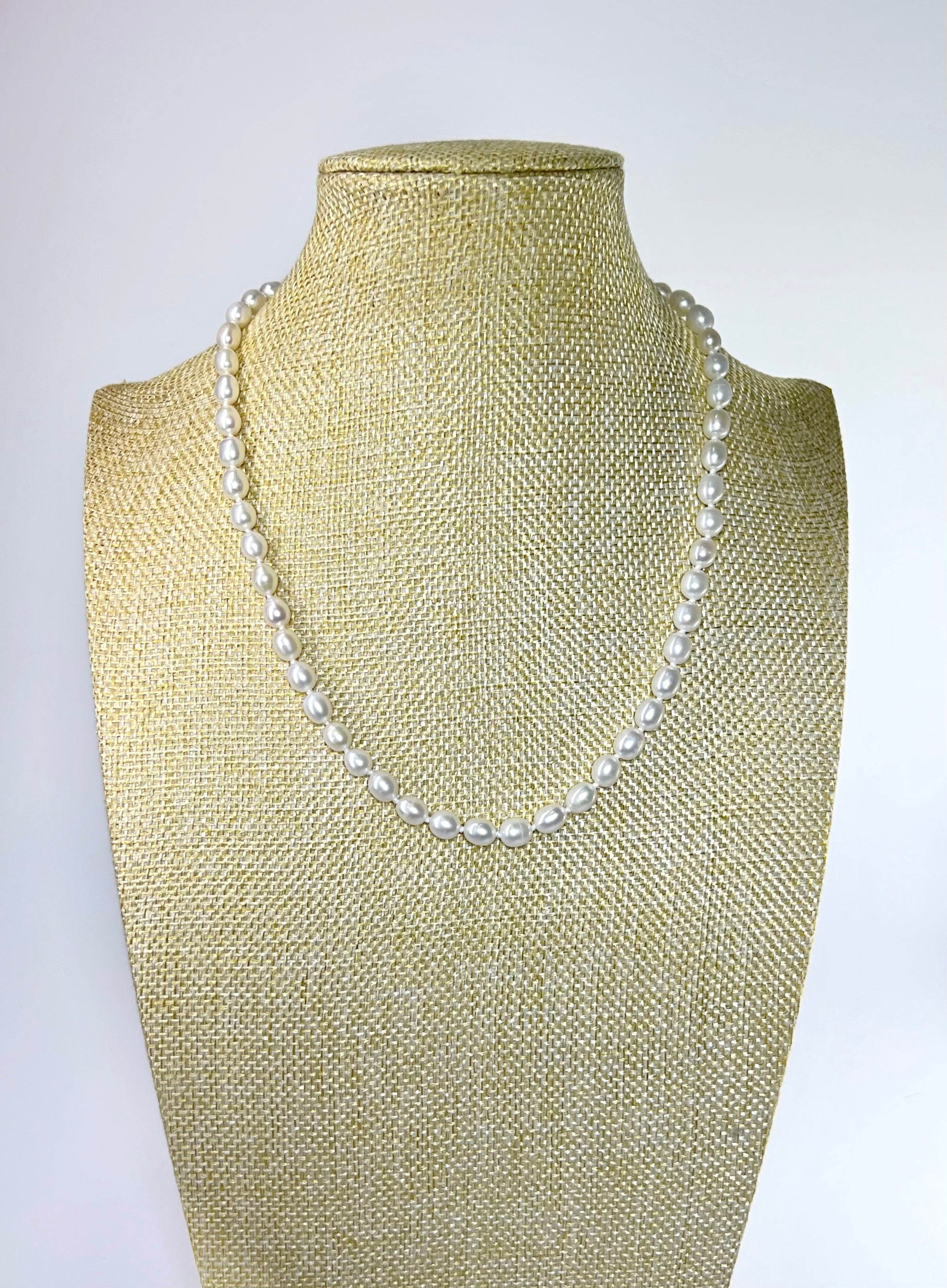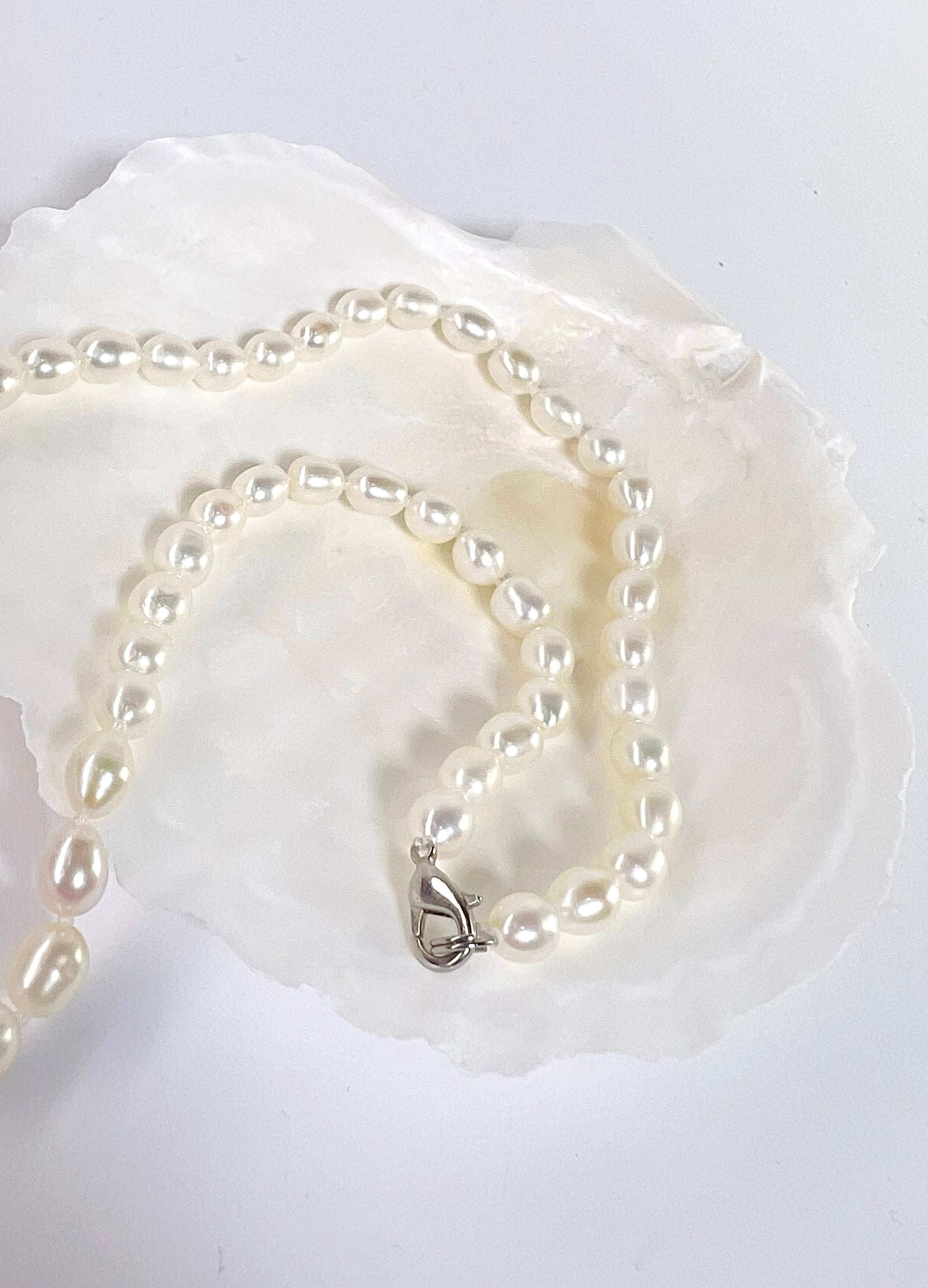Diese elegante Kette aus schimmernden Flussperlen hat eine Länge von 45 cm. Sie ist mit einem langlebigen und robusten Verschluss aus rostfreiem Edelstahl (Edelstahl-Verschluss)