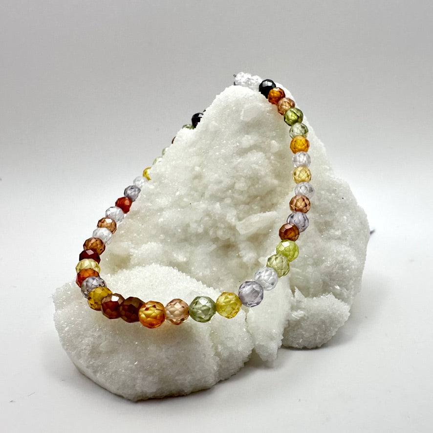 Eigenschaften: Die Kombination verschiedener Zirkonfarben schafft einen kraftvollen energetischen Mix: Er schenkt Selbstvertrauen, hebt die Stimmung und zieht Erfolg in verschiedenen Lebensbereichen an. Dieses Armband hilft dabei, das Gleichgewicht zwischen Emotionen und Verstand zu finden, stärkt die Intuition und schützt vor Negativität, während es den Träger mit innerem Licht und Freude erfüllt.