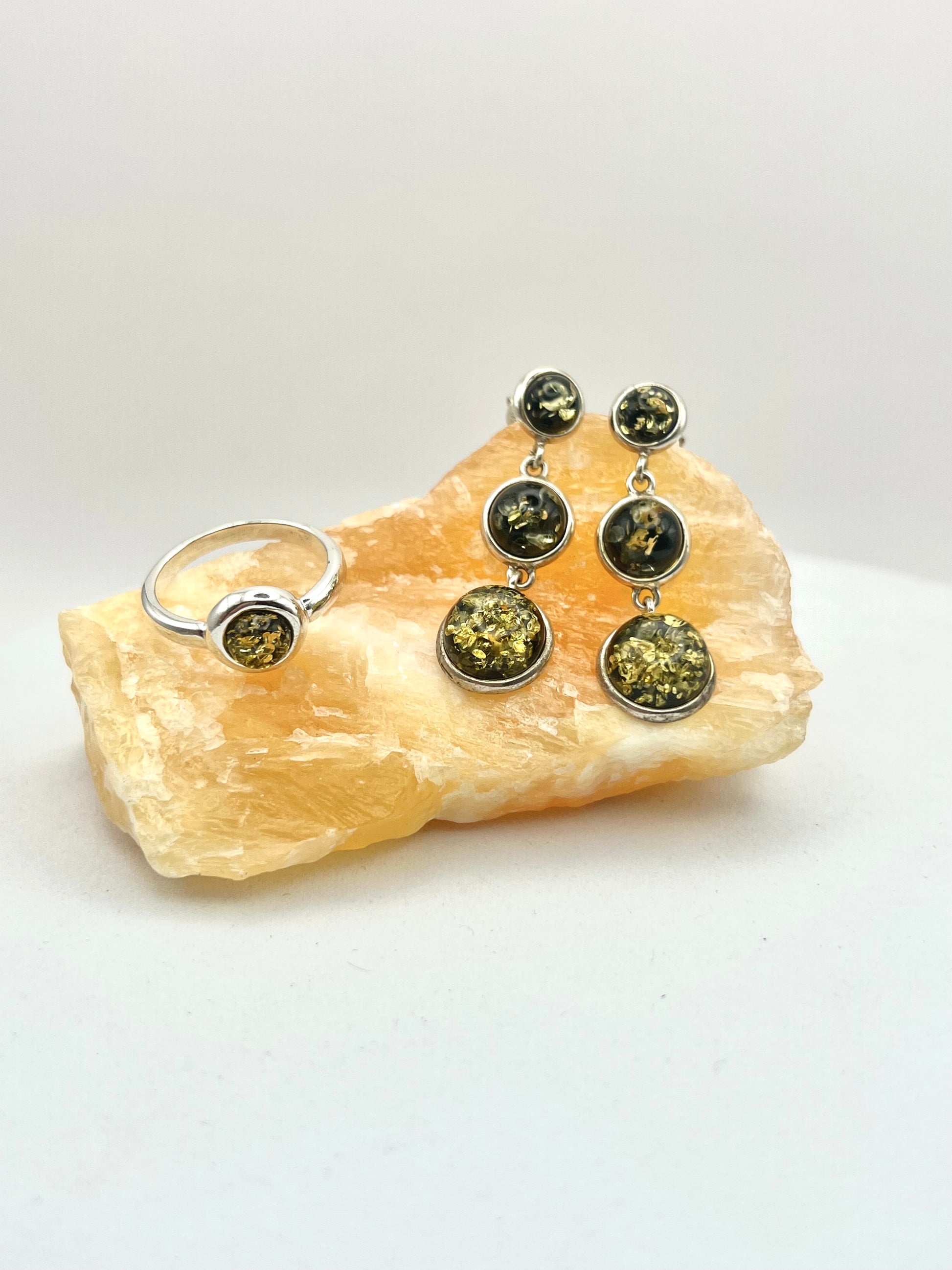 Luxuriöses Set: Grüner Bernstein & 925 Silber