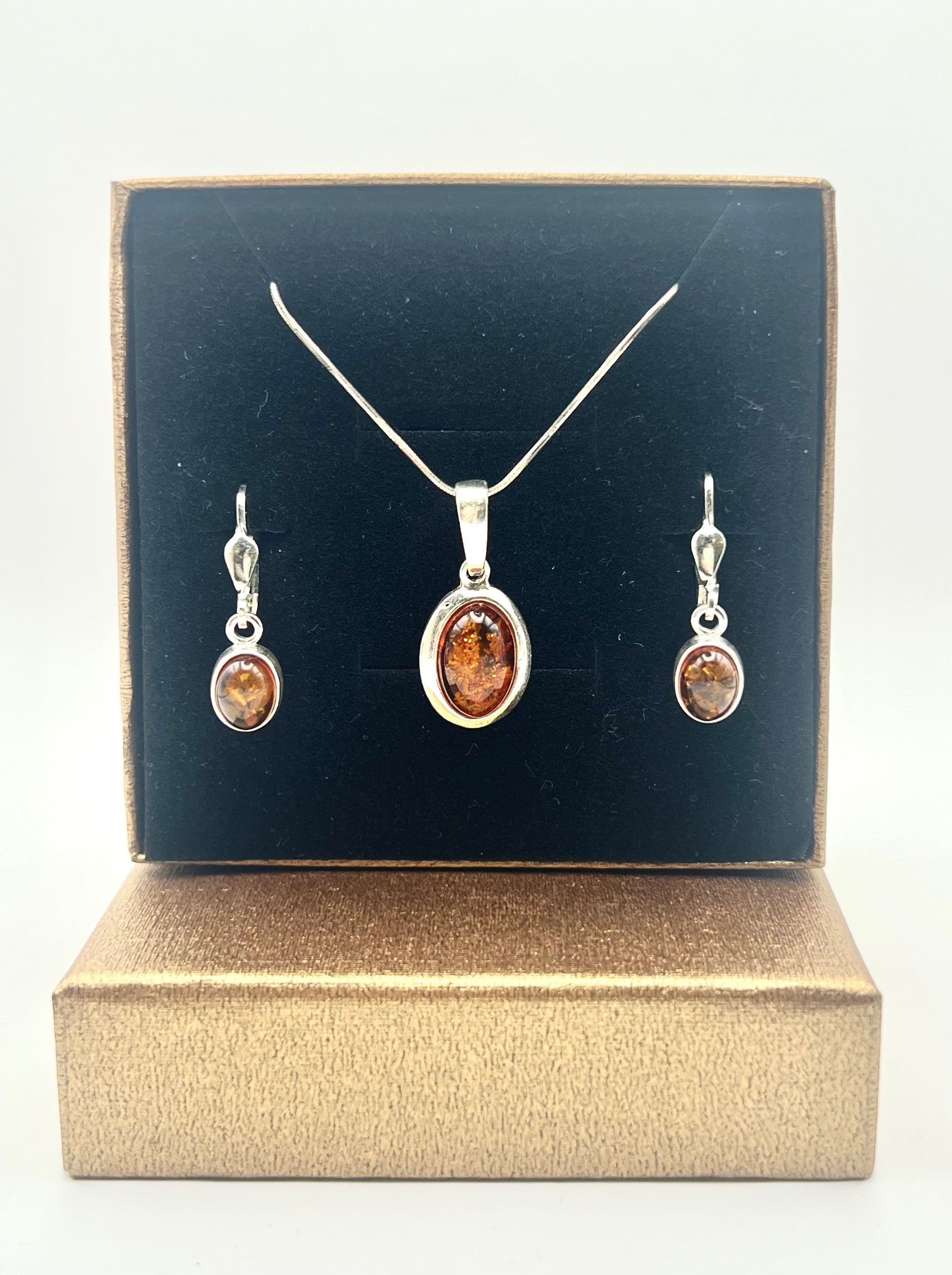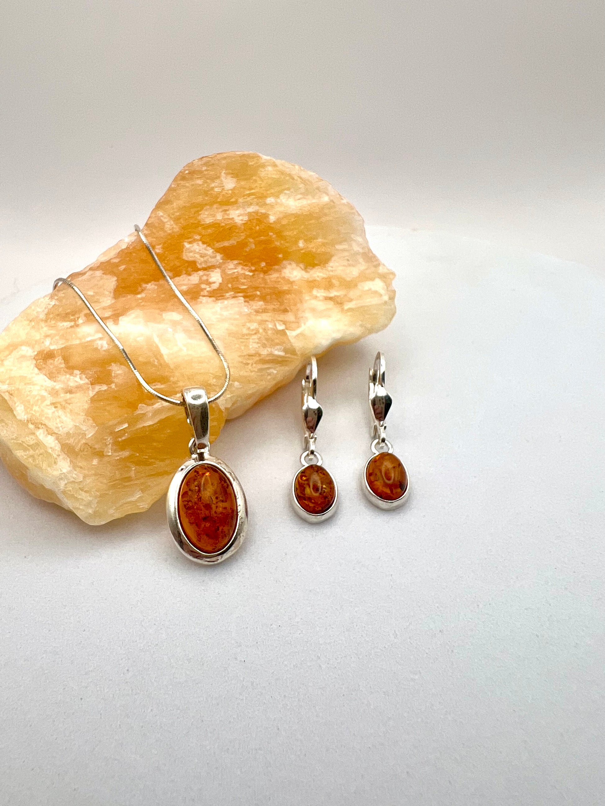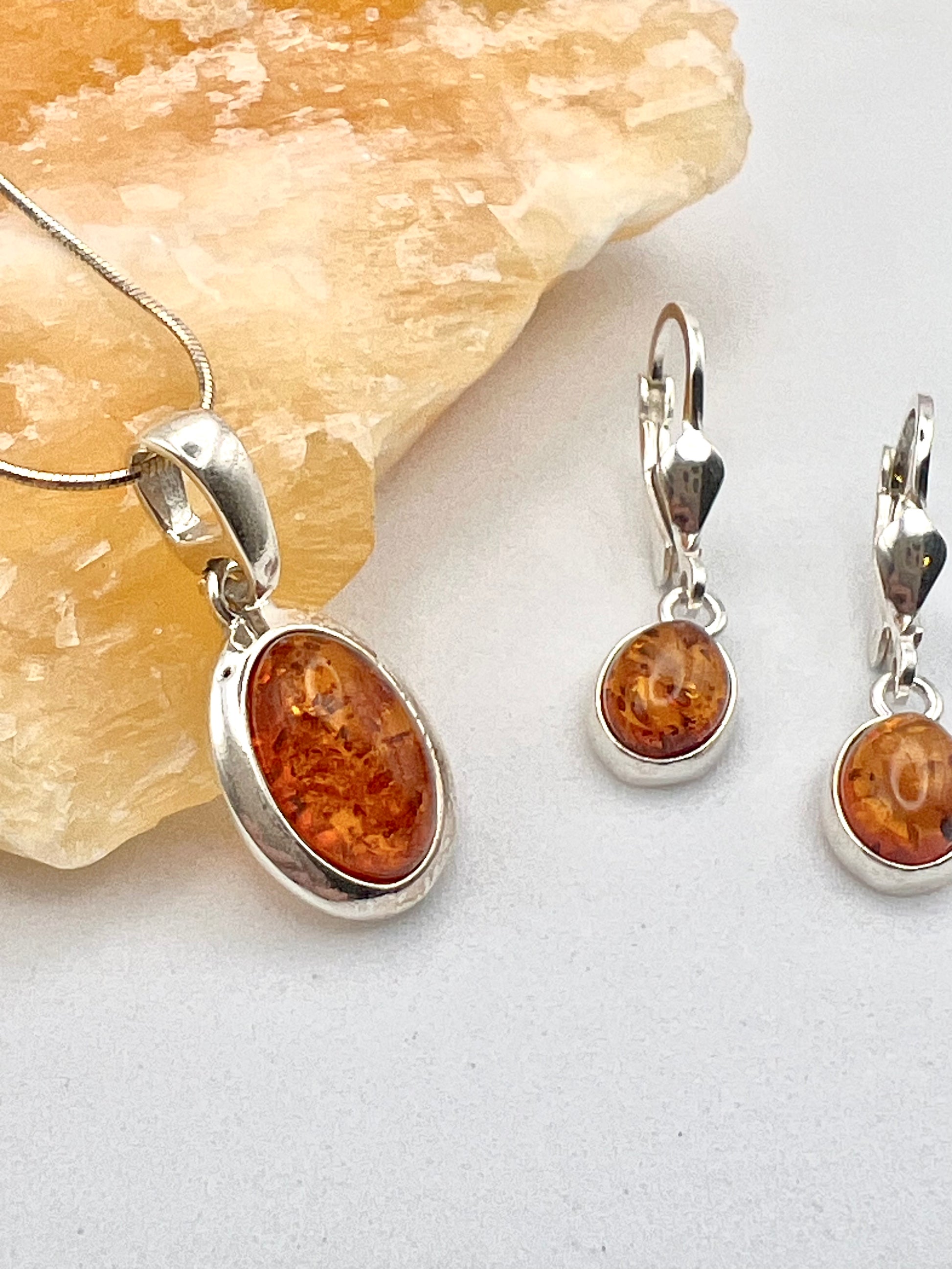 Klassisches Set: Ovaler Bernstein in 925er Silber.