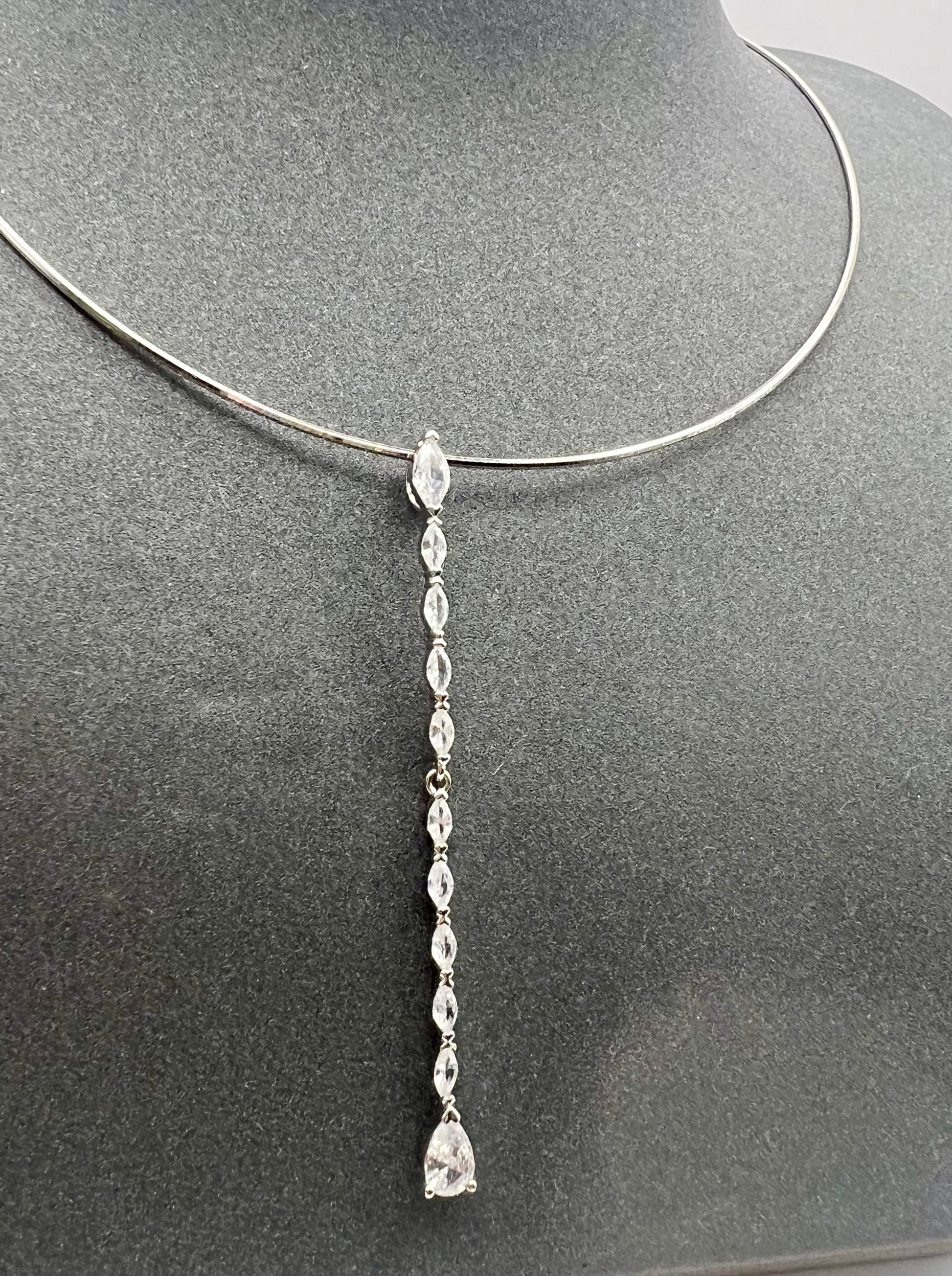 Glamour-Set im Y-Stil: 925 Sterling Silber Collier-Kette (45 cm) und lange Chandelier Ohrhänger, besetzt mit funkelnden Zirkonia. Ein atemberaubendes Accessoire für festliche Abende und Hochzeiten.